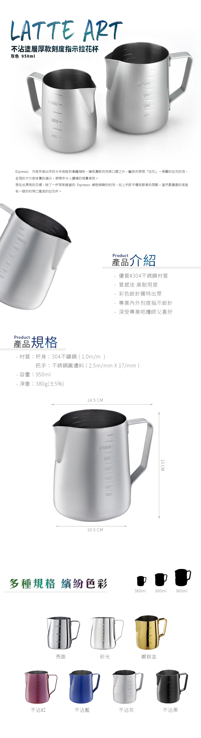 1431B無柄斜口拉花杯附皮套450cc (鈦黑)(尖